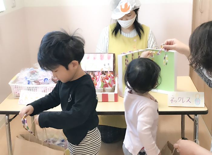 音楽あそび、工作、マット運動、お絵かき、数あそびなど、